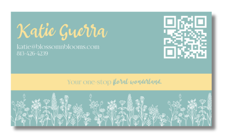Blossom & Blooms initial requests for tangible marketing assets included business cards and a sign for their booth at local markets. KMC worked with Katie to create the perfect options!
